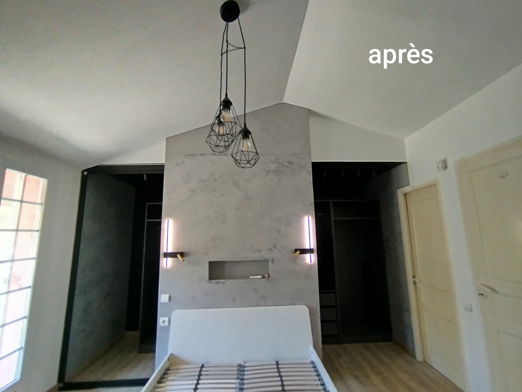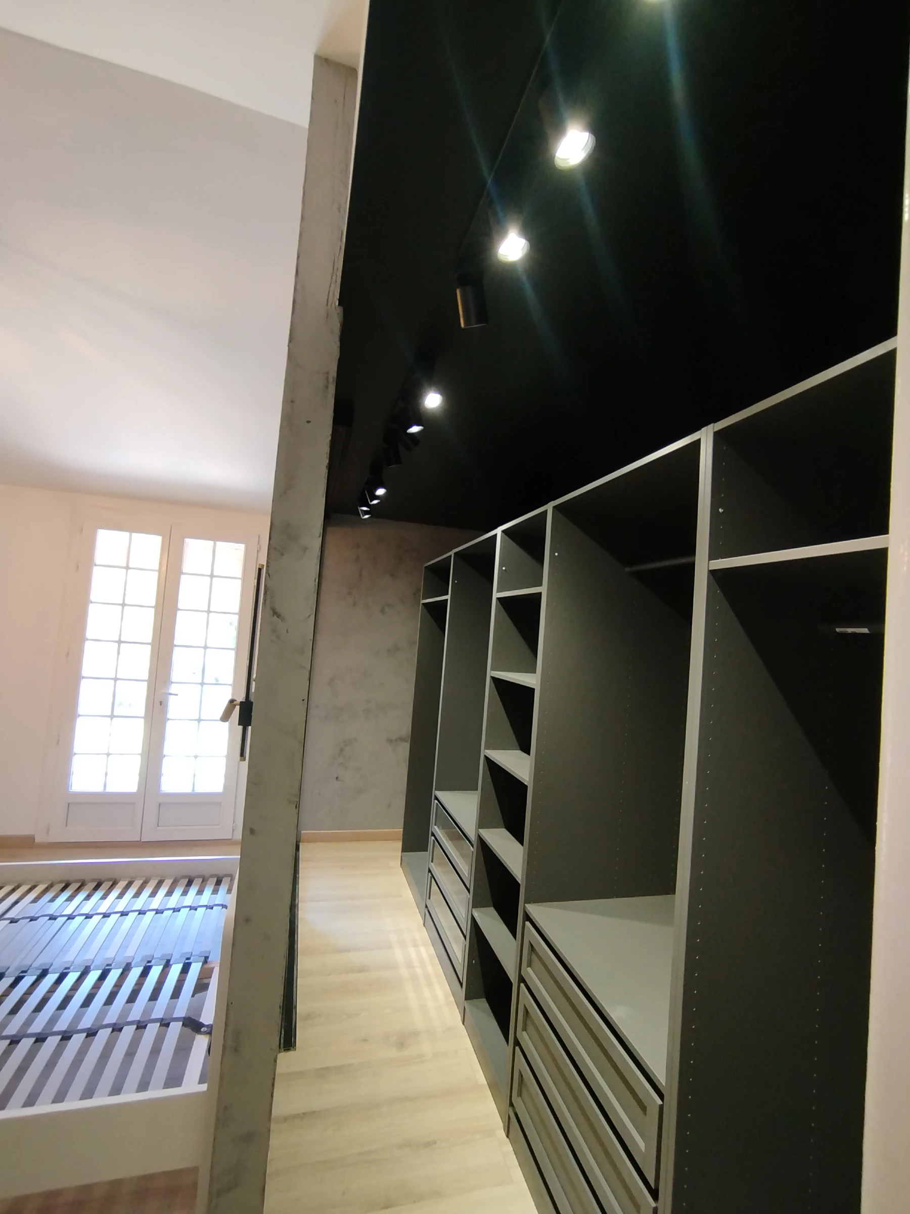 Au-delà de la simple mise en conformité, nous avons proposé des solutions personnalisées pour enrichir le confort quotidien. Des liseuses murales ont été intégrées de part et d’autre du lit, offrant un éclairage adapté aux moments de lecture. Nous avons également conçu un éclairage spécifique pour le dressing, assurant une visibilité optimale tout en créant une atmosphère élégante et pratique. Ces aménagements illustrent notre capacité à transformer une pièce en y intégrant des solutions sur mesure, pensées pour répondre à la fois aux besoins pratiques et au confort de vie.